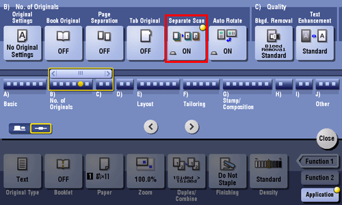 In [Separate Scan], you can switch between the ADF and Original Glass for scanning the originals.