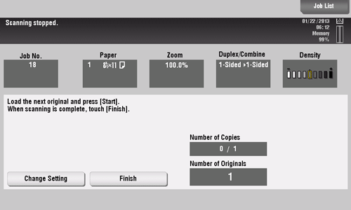 To scan the original again, tap [No]. Tap [Change Setting] to change the copy settings.