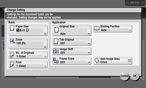 If desired, tap [Change Setting] to change the copy settings according to the new original.