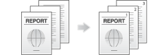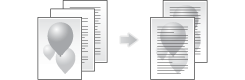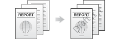 The original image scanned in the first page is overlaid on the originals scanned in the subsequent pages. The original to be scanned in the first page is used for overlay image. For example, if you copy three original pages, two pages are output, including "a merged image of the first and second pages" and "a merged images of the first and the third pages". The Overlay function is useful for overlay of text, pictures or figures not prepared in other stamp functions on the original.