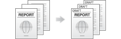 Text such as "PLEASE REPLY" and "DO NOT COPY" are printed on the first page or all pages. You can select the text to be printed from the registered fix stamps and arbitrary registered stamps.
