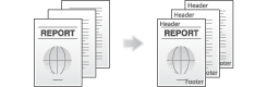 Add the date, time and any other desired text in the top and bottom margins (header/footer) of the specified page. You must register the information to be added to the header and footer on this machine in advance.