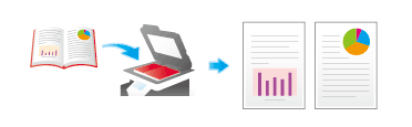 You can scan two-page spreads such as books and catalogs separately into the left and right pages, or scan a page spread as a single page. If you place a book or catalog on the Original Glass, you do not need to close the ADF to scan it.