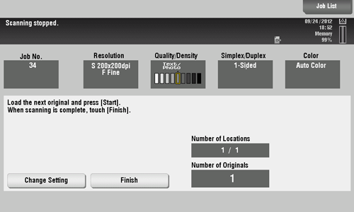 If the number of original sheets is so large that they cannot be loaded into the ADF at the same time, you can load them in several batches and handle them as one job.