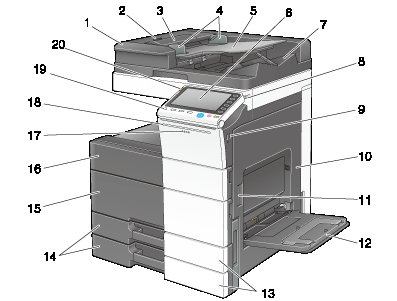 HomeAbout This MachineChecking the Name and Function of Each Part in This Machine (bizhub 554e/454e)