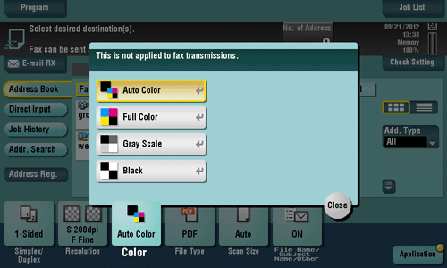 [Auto Color] | Scan by automatically selecting either [Full Color] or [Gray Scale] according to the original color. |