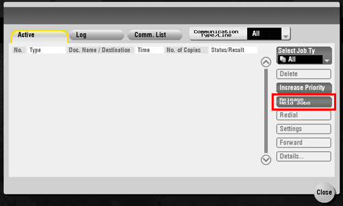 While [Active] is displayed, tap [Release Held Jobs].