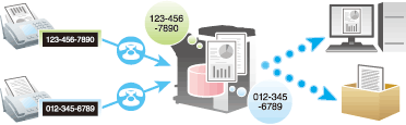 PC-Fax RX is a function that automatically saves a received fax to the Memory RX User Box or a User Box specified in F-Code (SUB Address).