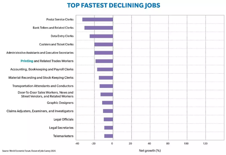 The Printing and Related Trades is amongst the top-fastest declining job sectors4