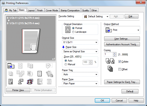 On the [Basic] tab, set up the print function which uses the password for [Secure Print], [Save in User Box], [User Authentication] and others.