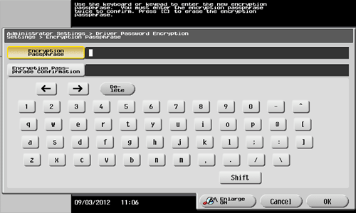 To change the encryption password, you need to set the same encryption passphrase in this machine and in the printer driver.