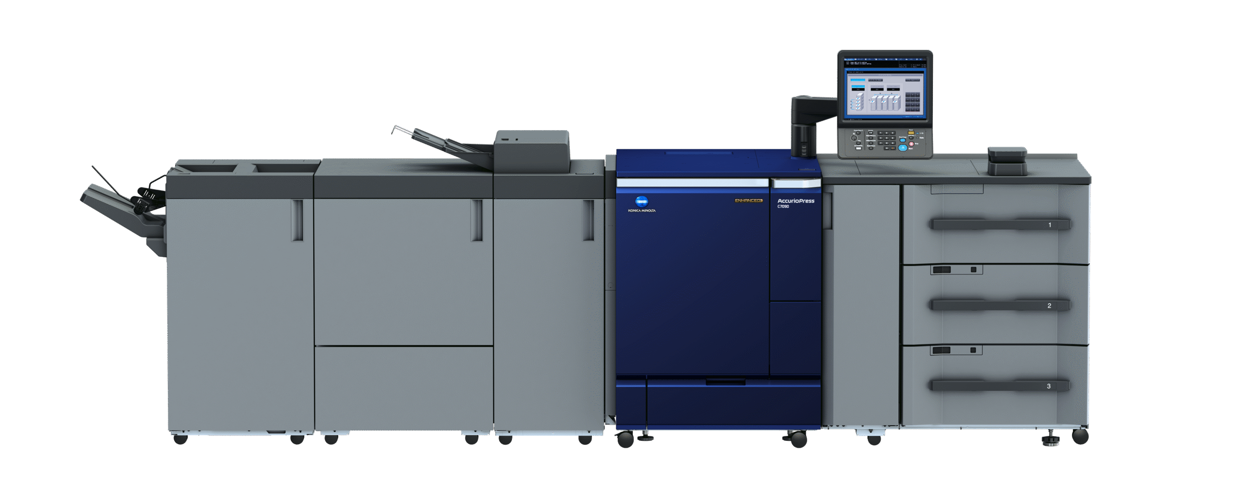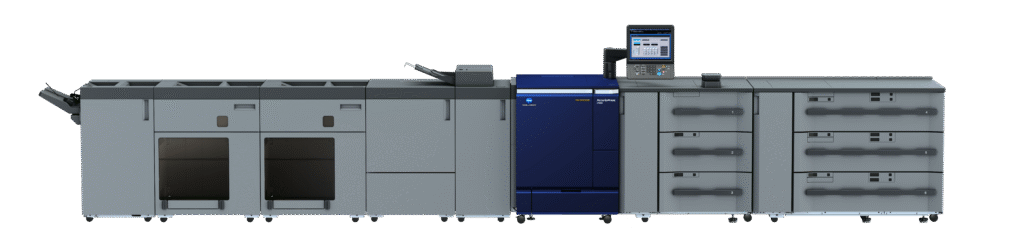 Large Range of flexible inline finishing options including the TU-510 option for trimming, creasing and perforation and other options for perfect binding, booklet saddle stitching, folding and auto ring bind finishing.
